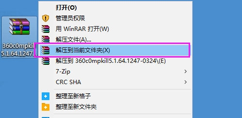 2、安装到电脑,右键选择解压到当前文件夹